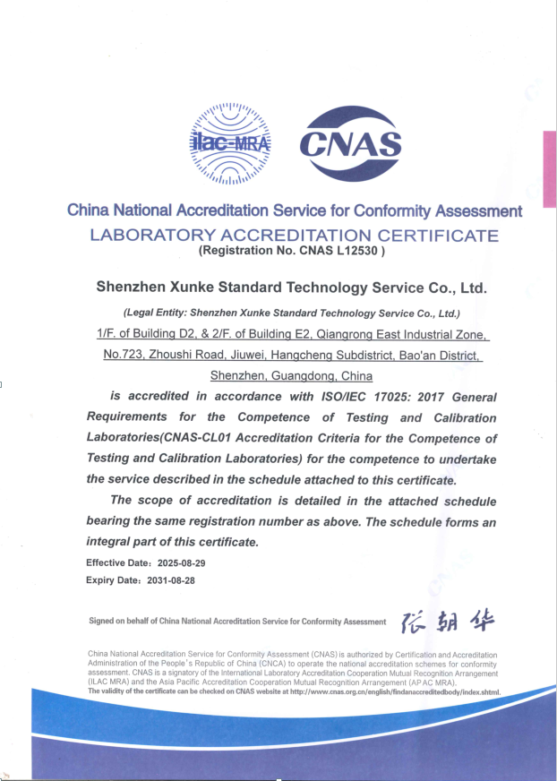 深圳訊科標(biāo)準(zhǔn)技術(shù)為第三方檢測(cè)機(jī)構(gòu),專業(yè)提供:3C認(rèn)證,KC認(rèn)證,CE認(rèn)證, CCC認(rèn)證, UV老化測(cè)試, 高低溫測(cè)試, 聲學(xué)測(cè)試, 老化壽命測(cè)試, 有害物質(zhì)檢測(cè), 軟件測(cè)試測(cè)評(píng), 防水防塵測(cè)試, 第三方檢測(cè)中心, 危廢鑒定, 第三方測(cè)試報(bào)告, ROHS環(huán)保認(rèn)證, FCC認(rèn)證, PSE認(rèn)證, BQB認(rèn)證, CB認(rèn)證, SRRC型號(hào)核準(zhǔn), 防爆認(rèn)證, 可靠性測(cè)試, 氙燈老化測(cè)試, ISTA包裝運(yùn)輸測(cè)試, 氣體腐蝕測(cè)試, 振動(dòng)沖擊測(cè)試, 冷熱沖擊測(cè)試, WF2腐蝕等級(jí)測(cè)試, MTBF認(rèn)證測(cè)試, 失效分析, 材料檢測(cè)中心, 建筑材料檢測(cè), 連接器測(cè)試, 噪音測(cè)試, 環(huán)保檢測(cè), 環(huán)境檢測(cè), 水質(zhì)檢測(cè), 材質(zhì)鑒定, MSDS認(rèn)證報(bào)告, 運(yùn)輸鑒定報(bào)告, 質(zhì)檢報(bào)告, 烤箱檢測(cè), 亞馬遜UL檢測(cè)報(bào)告, 防火測(cè)試, 玩具檢測(cè), 電子產(chǎn)品質(zhì)量檢測(cè)中心, 食品接觸材料檢測(cè), 材料成分分析, 生物降解檢測(cè), reach測(cè)試,歡迎您的來(lái)電。
