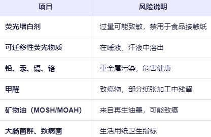 生活用紙含過量熒光增白劑 → 可能致敏或致癌