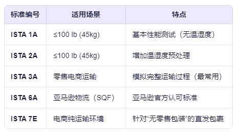 ISTA 標(biāo)準(zhǔn)根據(jù)產(chǎn)品重量、運輸方式、包裝類型分為多個系列: